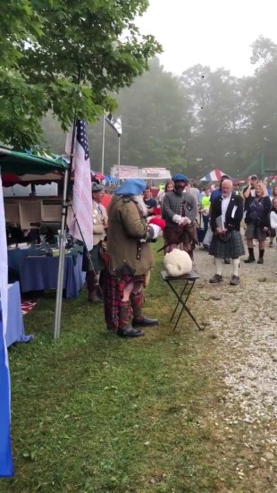 I have been dubbed “Haggis Hunter” by my fellow Cooklander Committee members. I spotted Elliott MacFarlane (historian, raconteur, spirit sommelier, chef) within the first 15 minutes of arrival at the Games. He was conducting a demonstration of how to make haggis.
