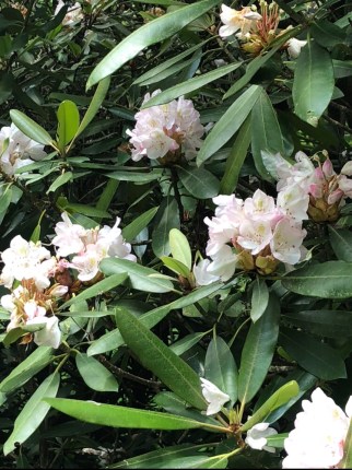 I’m a Florida girl. Everything is flat. I don’t see mountains or flowering trees growing out of mountains. I kept asking, “What is that? It’s not Dogwood.” I discovered that I was seeing Rhododendrons. I’ve never seen them so big. My new North Carolina friends told me, “they’re not usually blooming this late in the year.”